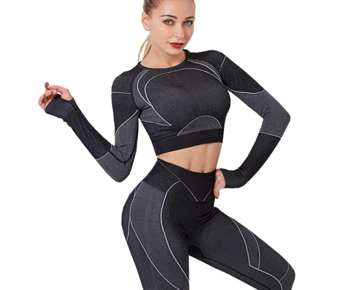 Seamless Compression Stretch Fitness outfit for the gym, yoga or leisure outfit designed for ultimate comfort and performance. Crafted from ultra-stretchy, soft, and sweat-wicking fabric, it keeps you cool and dry. Squat-proof for total confidence in every move.