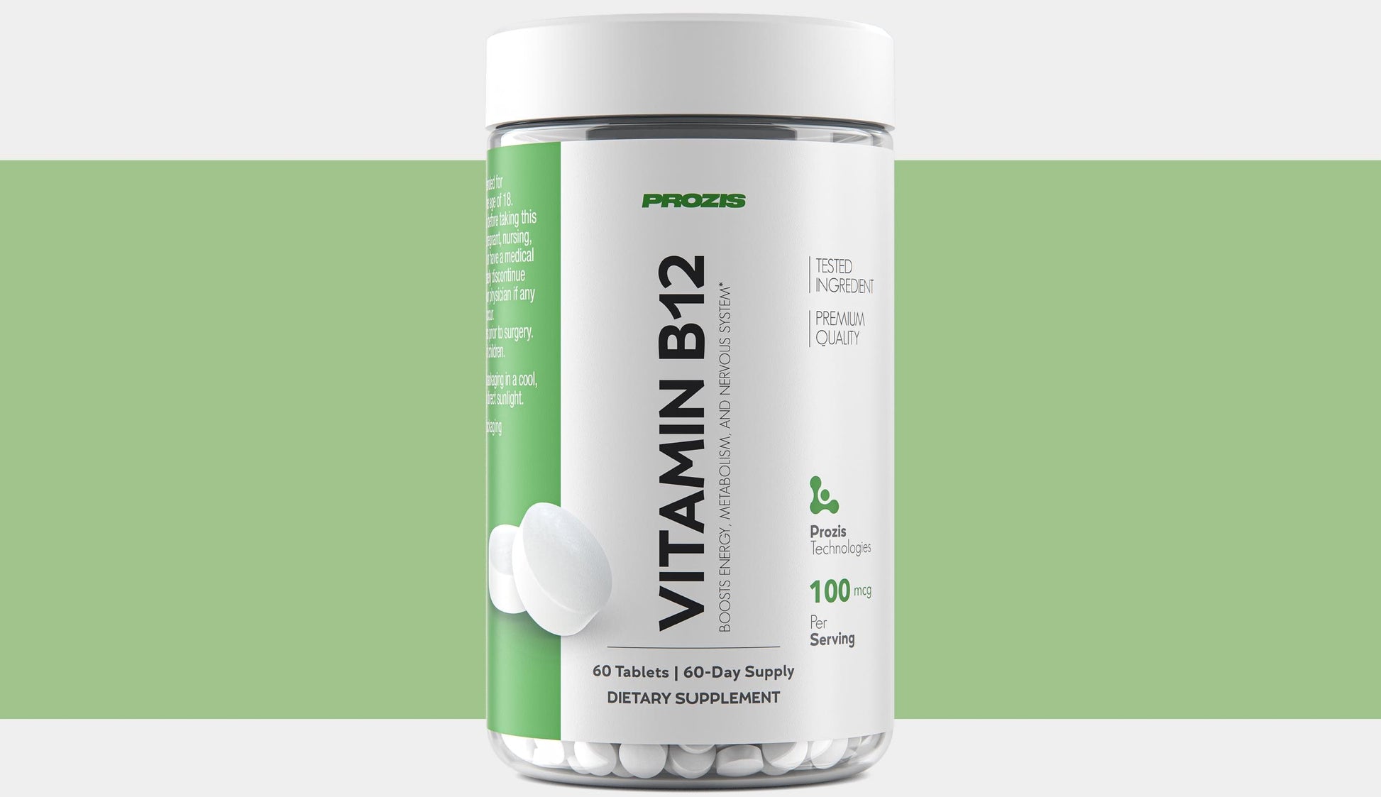 Prozis developed this Vitamin B12 supplement to provide easy access to a crucial nutrient that plays a role in energy production, immune support, and nervous system function.* Each tablet delivers 100 mcg of Vitamin B12, supporting those who might struggle to get enough through their daily diet.*