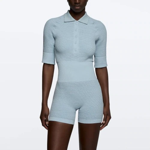 Waffle Wellness Short Jumpsuit - Sky Blue
